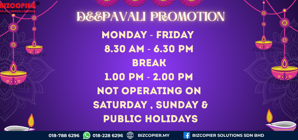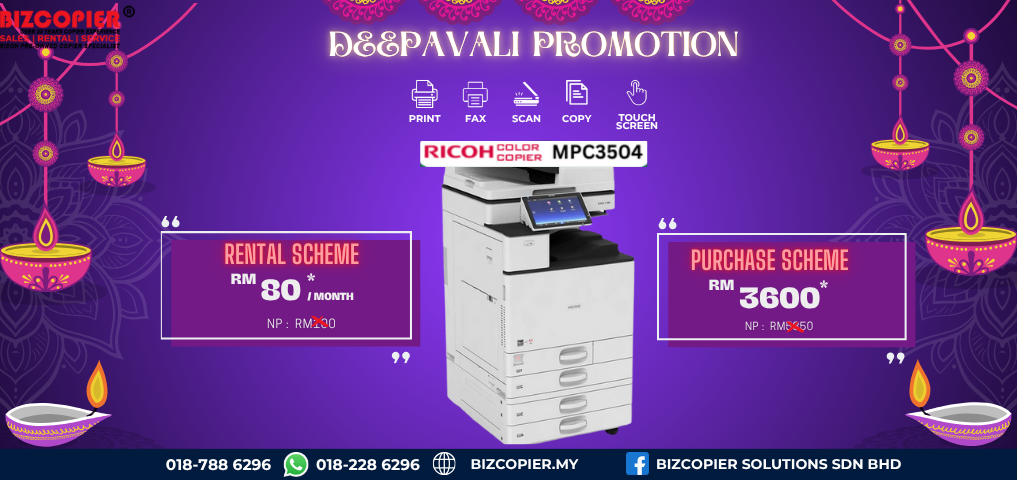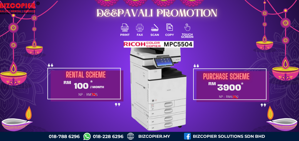 BIZCOPIER Solutions adalah pilihan terbaik untuk anda. Kami di BIZCOPIER Solutions menyediakan perkhidmatan sewa mesin fotostat ATAU beli mesin fotostat. Secara lebih terperinci, kami menawarkan pembelian terus, sewa milik, dan sewa jangka masa pendek atau panjang bagi mesin fotostat jenama Ricoh. Demi memenuhi kepuasan pelanggan, kami menyediakan beberapa pelan harga sewa yang sesuai untuk pelbagai jenis perniagaan. Dengan ini, kami dapat menepati keperluan pelanggan pada harga yang berpatutan. Para pelanggan juga dapat memaksimumkan nilai dan keuntungan daripada pilihan pelan ini. Sekiranya anda keliru atau memerlukan bimbingan, hubungi kami untuk mendapatkan maklumat lanjut. Kami bersedia membantu anda.